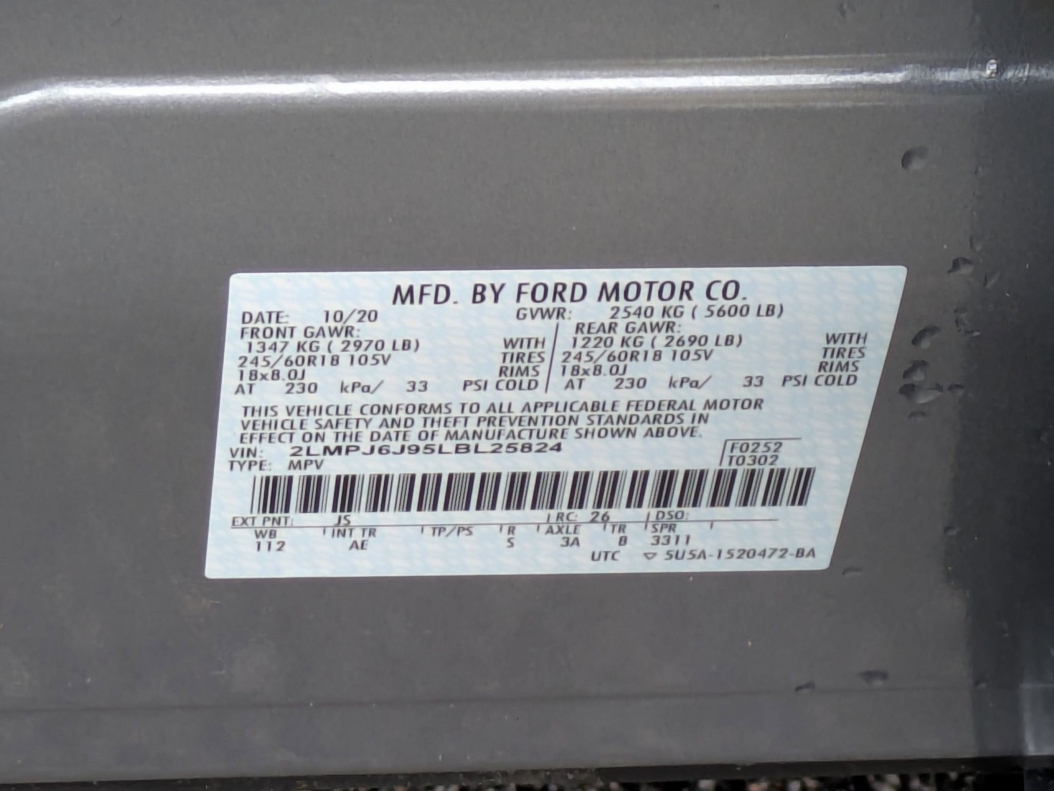 - Tires: P245/60R18 AS BSW V-Rated -inc: T155/70R18 mini spare tire