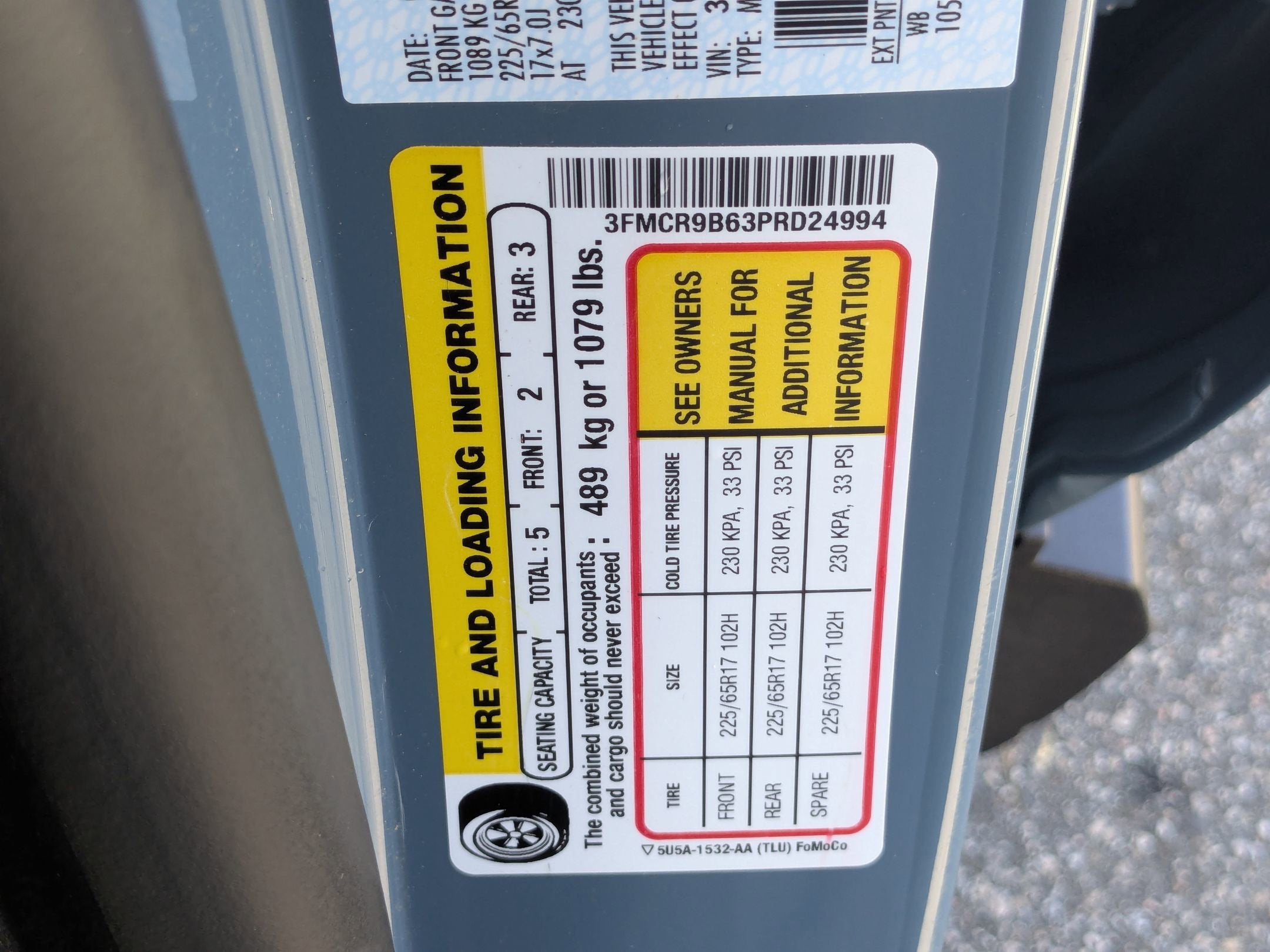 - Front Tire Size: P225/65HR17