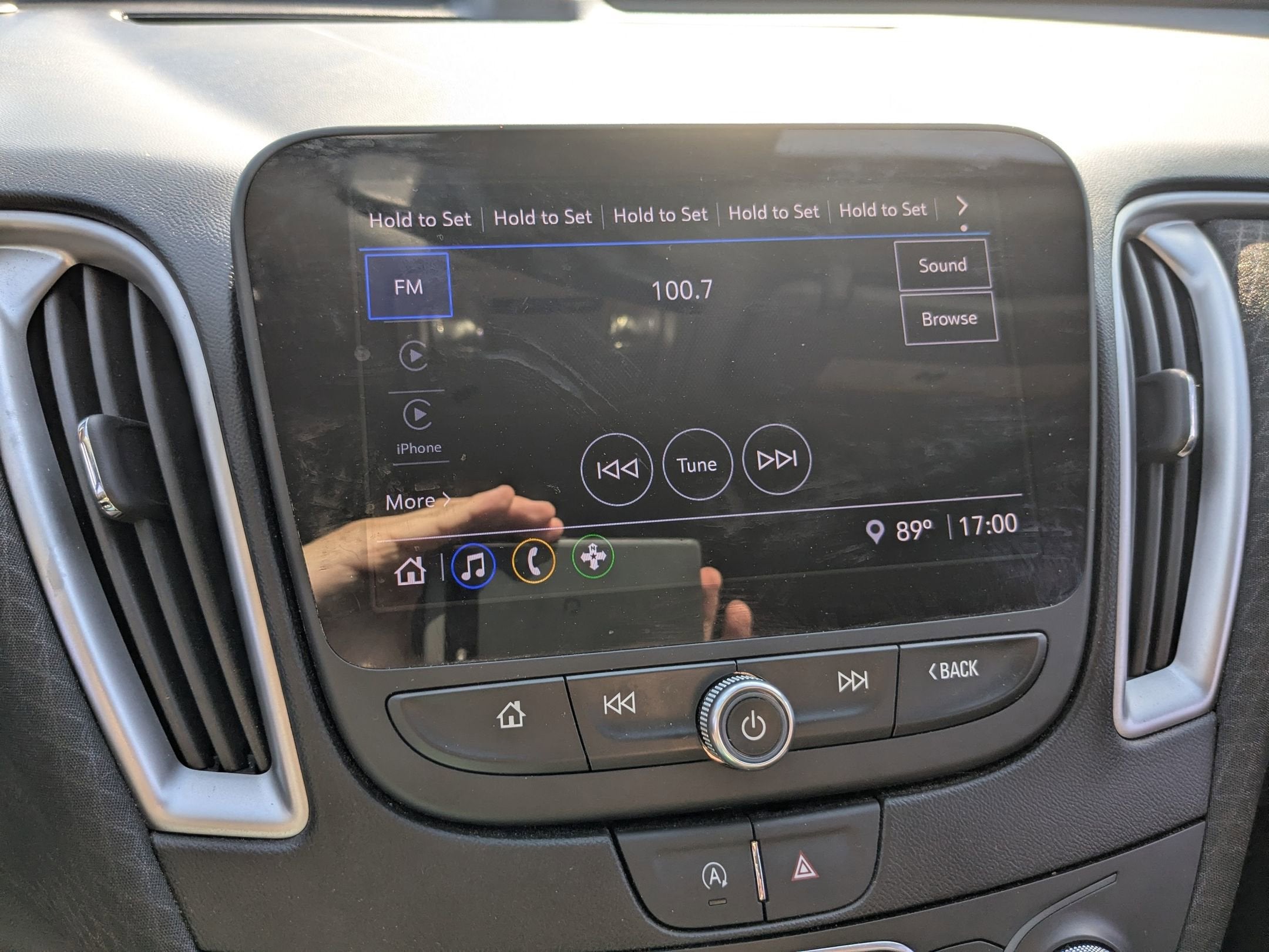 - Audio system, Chevrolet Infotainment 3 system, 8" diagonal color touchscreen, AM/FM stereo. Additional features for compatible phones include: Bluetooth® audio streaming for 2 active devices, voice command pass-through to phone, Apple CarPlay and Android Auto capable.