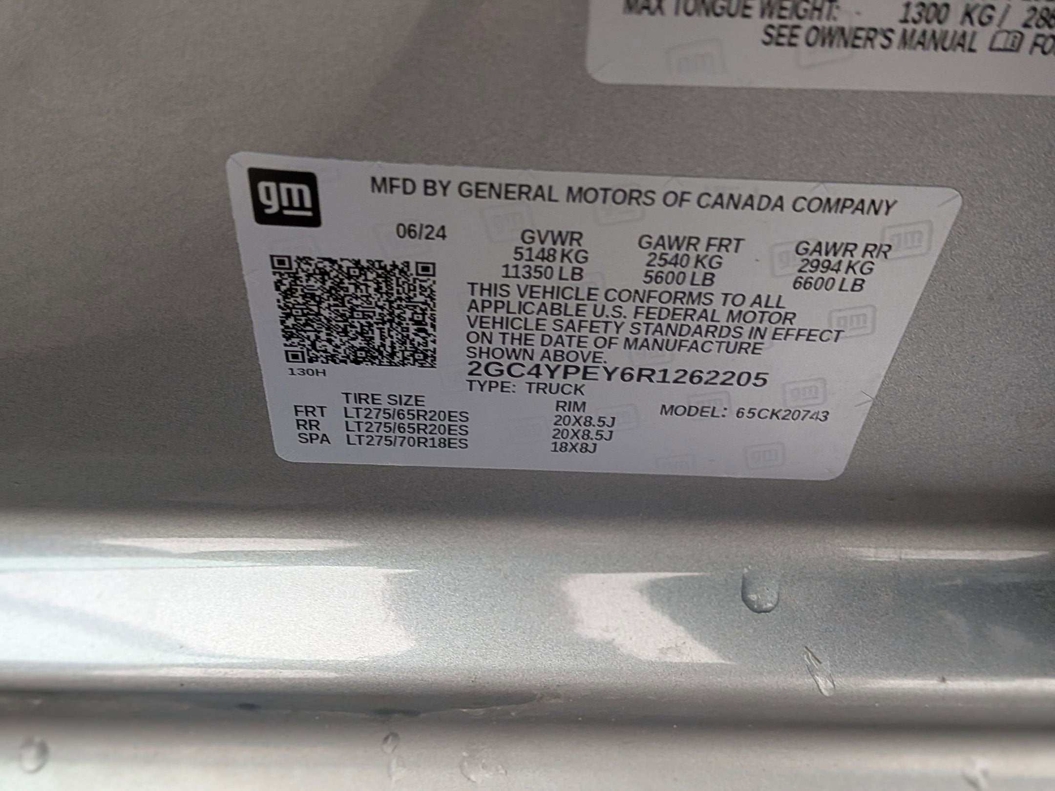 - Rear Tire Size: LT275/65R20