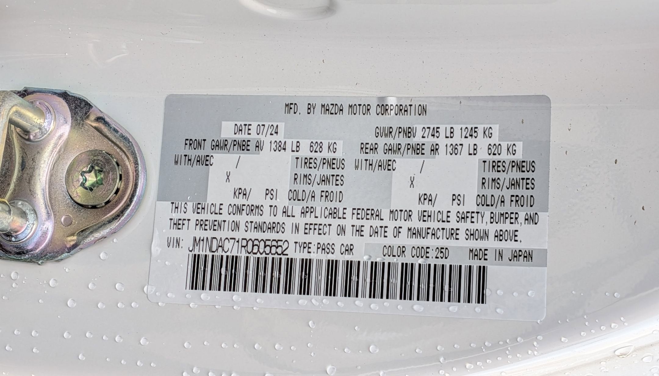 - Vehicle Name: Mazda MX-5 Miata