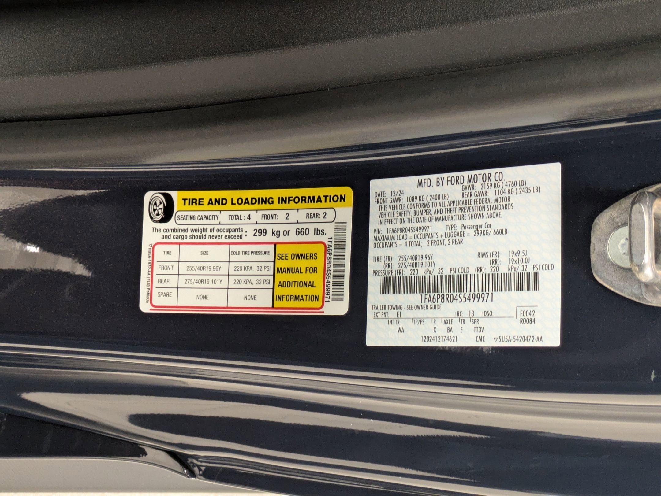 - Tires: 255/40R19 Fr & 275/40R19 Rr Summer Only -inc: Designed to optimize driving dynamics and provide superior performance on wet and dry roads, High performance summer tires wear faster than non-performance tires, Ford does not recommend using summer tires when temperatures drop to approximately 45 deg F (7 deg C) or below or in snow/ice conditions