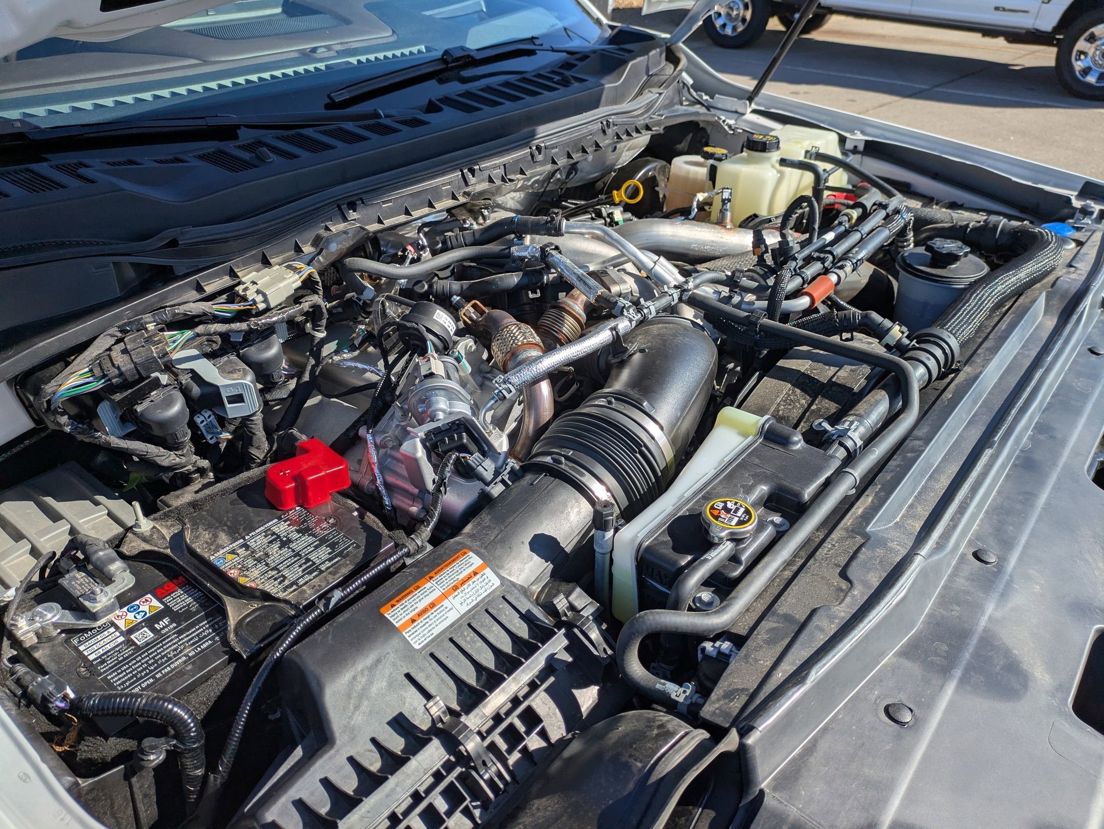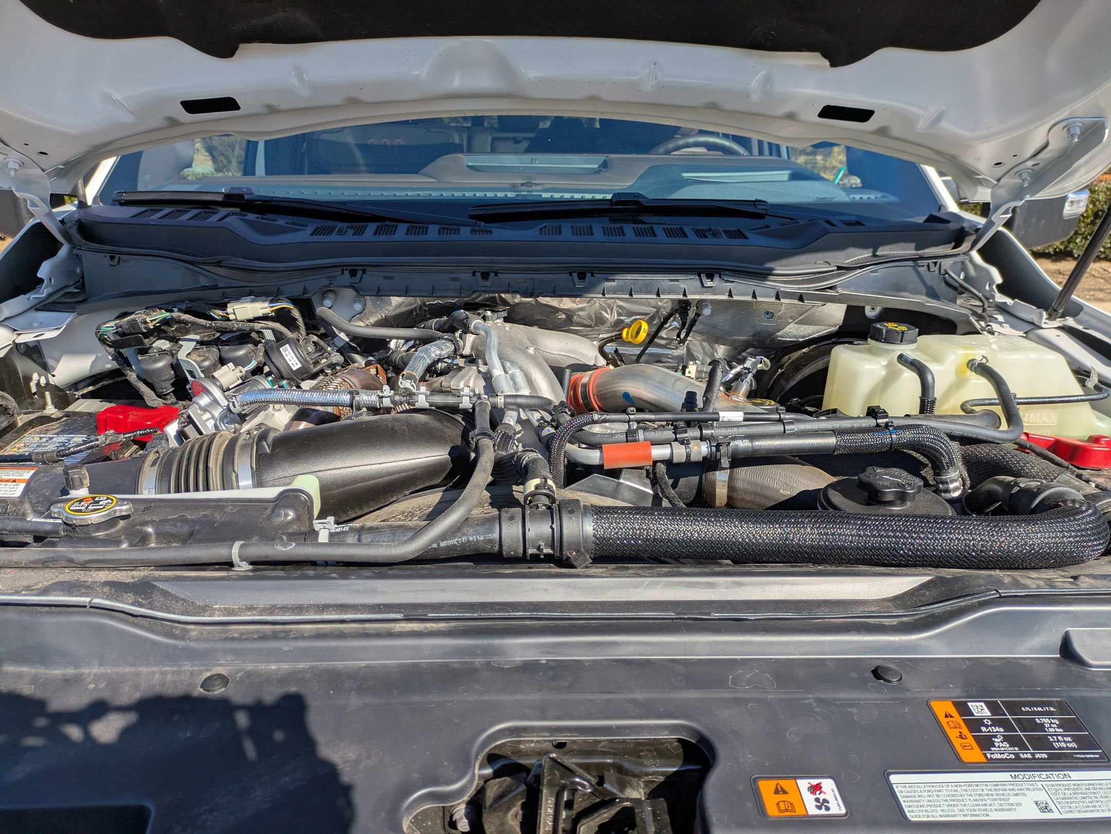 - ENGINE: 6.7L HIGH OUTPUT POWER STROKE V8 DIESEL -inc: Turbo diesel B20 manual push-button engine-exhaust braking and Operator Commanded Regeneration (OCR) 34 Gallon Fuel Tank 3.31 Axle Ratio High Capacity 11.6" Axle Upgrade Package increased GCW and upgraded 11.6" axle Note: Salesperson's portfolio or trailer towing guide should be consulted for specific trailer towing or camper limits and corresponding required equipment axle ratios and model availability See supplemental reference for vehicle height consideration Dual 68 AH AGM 750 CCA Batteries